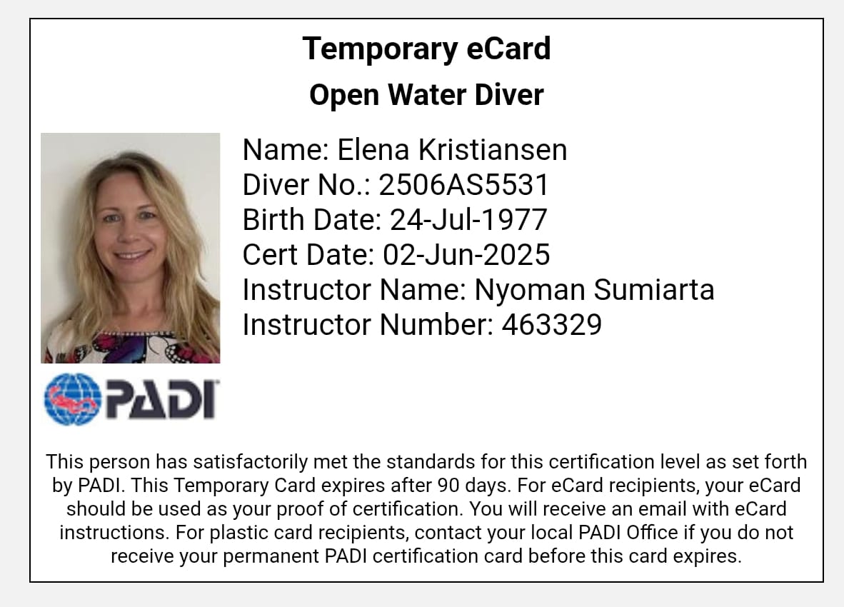 • After completed all these requirement you’ll be certified as open water diver that allow you to dive until maximum depth of 18 meters anywhere in the world.